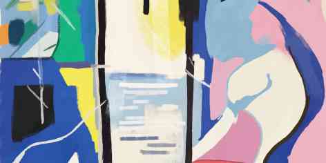 Das Motiv zeigt eine stilisierte Stadtszene mit Reiterfigur, Segelschiffen und markanter Architektur in klarer Farbgestaltung.